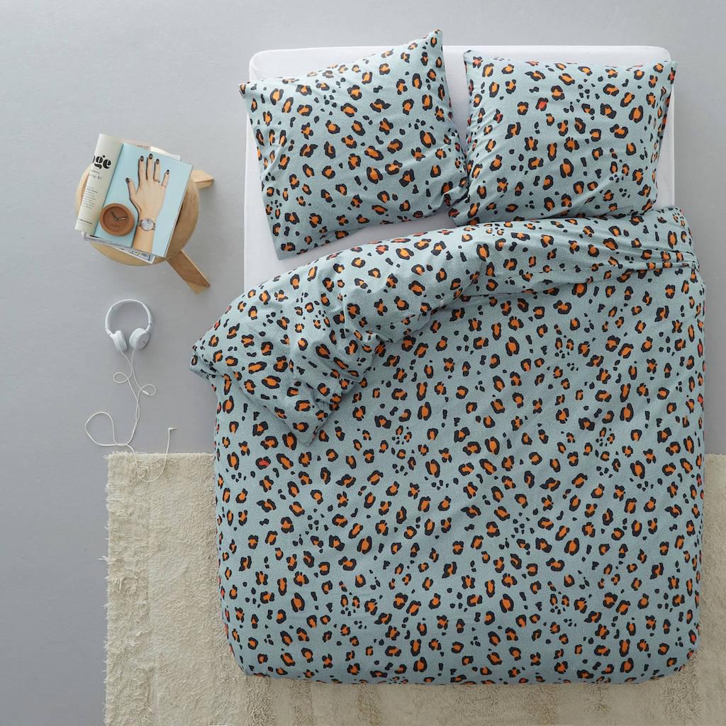 Weer zo’n fantastische combi. Een dekbedovertrek met stoere panterprint in de allermooiste kleuren okergeel en lichtblauw. Prachtig! De stof is van katoen, dus je slaapt gegarandeerd heel comfortabel onder deze beauty!