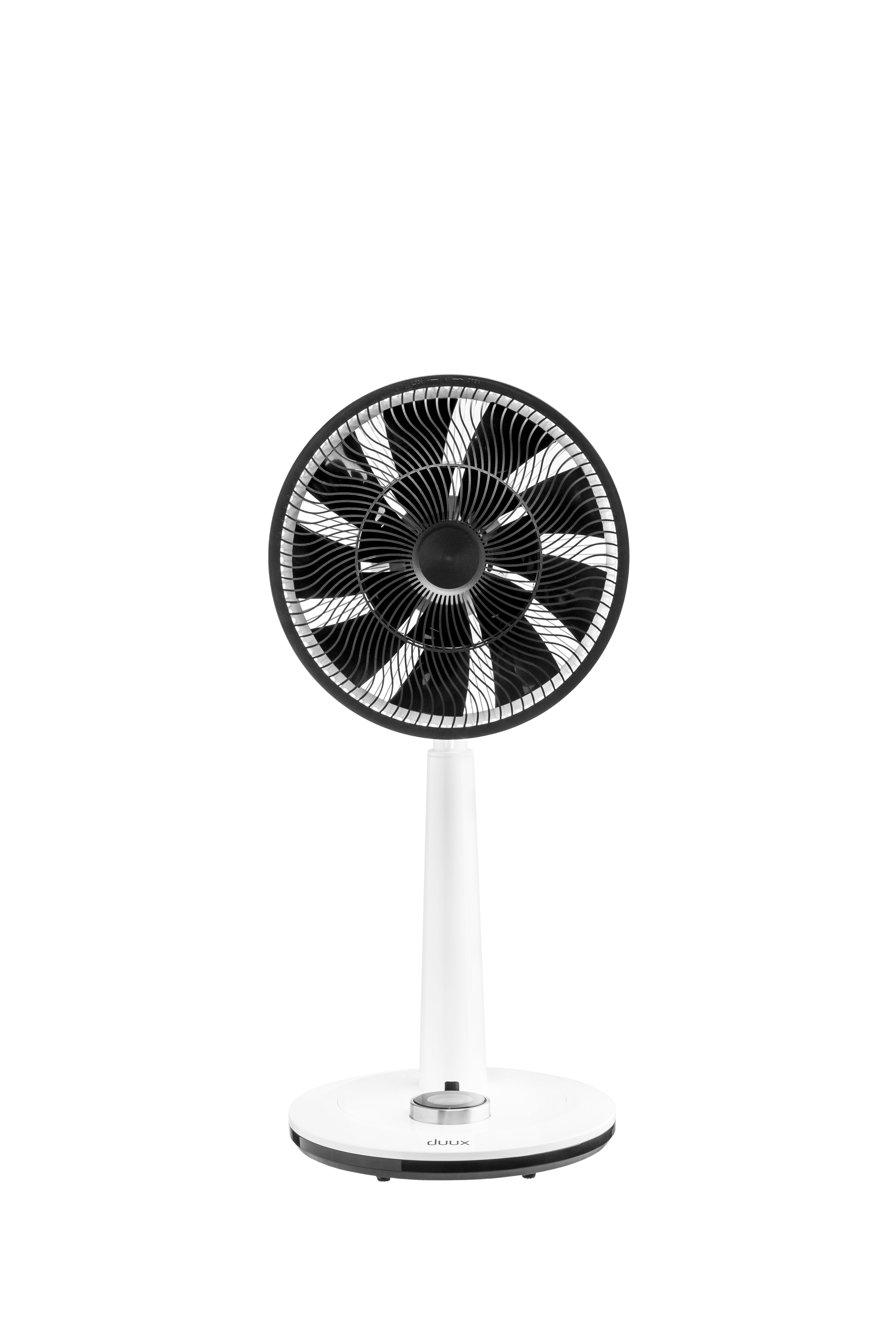 De Duux Whisper is een van de stilste ventilatoren in zijn soort. Het weinige geluid dát geproduceerd wordt, doet denken aan de wind die je buiten hoort ruisen. Als je wilt switcht de Whisper zelf tussen verschillende windsnelheden en luchtstroomrichtingen. De hoogte is verstelbaar en de ventilator draait zowel naar links en rechts als naar boven en beneden. Zo wordt de koele lucht gelijkmatig door de ruimte verdeeld.