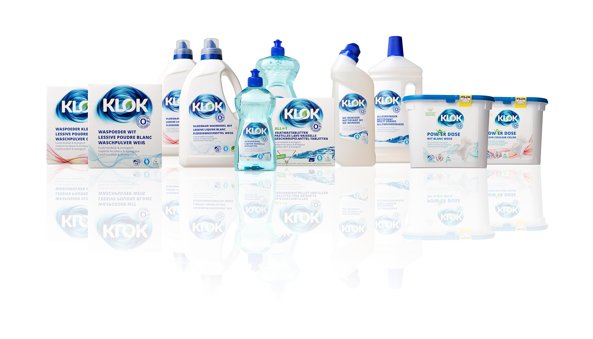 Klok: een compleet assortiment was- en reinigingsmiddelen zonder parfums en kleurstoffen