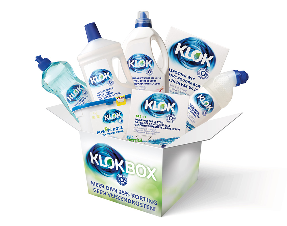 Klok heeft een compleet assortiment was- en reinigingsmiddelenzonder parfums en kleurstoffen. Ter kennismaking heeft het merk een voordelige Klokbox samengesteld. Hiermee kun je in het nieuwe jaar met vertrouwen de was doen, je badkamer en keuken reinigen en de vaat wassen.