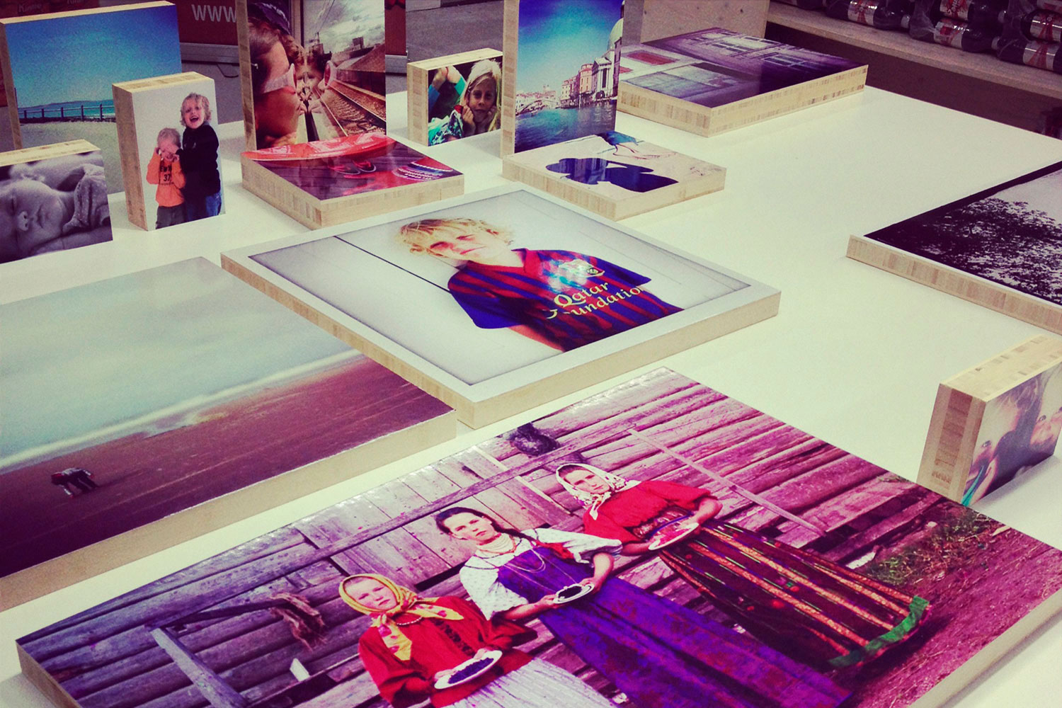 Wij gebruiken echte fotoafdrukken. We printen dus niet op het plexiglas, maar verlijmen echte foto’s.