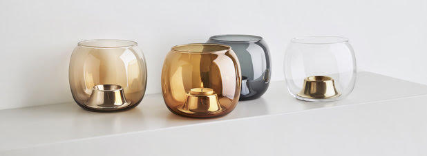 Designer Ilkka Suppanen raakte voor het windlicht Kaasa geïnspireerd door de lichtbakens die zeelieden de weg wezen over de onvoorspelbare Finse wateren en tegelijk een warm en veilig gevoel gaven. De theelichthouder is geliefd door zijn elegante mondgeblazen glazen design en de metalen basis waarin het licht reflecteert. Iittala komt met een nieuwe editie van helder glas met een roségoudkleurige metalen basis. Prijs: € 79,-*.