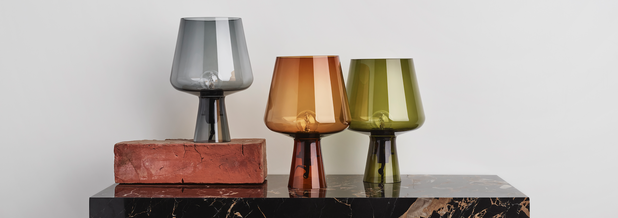 De Leimu-serie van designer Magnus Pettersen bestond al uit een opvallende combinatie van fijn geblazen glas en zwaar beton. De nieuwe Leimu-lamp is volledig van glas gemaakt en een maat kleiner (240 x 165 mm). Het glas is met de mond geblazen door zeer vakkundige en ervaren glasblazers in de Iittala-fabriek in Finland. Met het gestroomlijnde design en het door-en-door gekleurde glas - in grijs, koper of mosgroen - creëert Leimu een warme en verleidelijke sfeer in huis. Het kleinere formaat maakt deze Leimu geschikt voor op een nachtkastje of op een plank. Prijs: € 349,-*.