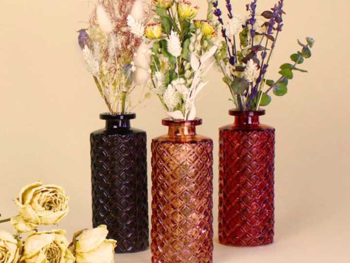 Het zit een beetje in ons systeem dat bloemen altijd in een vaas moeten staan. Met droogbloemen mag je dat idee gelukkig loslaten! We kennen allemaal de bloemstukjes die we maakten door droogbloemen in groene oase te steken. Vooral rond de kerst veranderen op veel scholen blokken oase in gezellige kerststukjes. Natuurlijk is er niks mis met deze methode, maar neem voor de verandering een stuk klei en boetseer er bijvoorbeeld een hand van en steek daar droogbloemen in zodat het lijkt alsof de hand de bloemen vasthoudt. Of neem een stuk ijzerdraad en vorm die tot een vorm waarna je er droogbloemen invlecht tot je een bijzondere bloemenkrans hebt. Of zoek een roestig stuk hoekstaal en boor er gaten in waarin je droogbloemen zet. Kortom, laat je creativiteit bloeien en maak iets bijzonders van je droogbloemen!