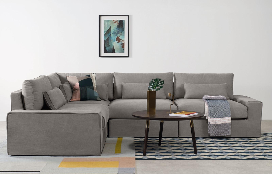"Januari staat onder andere in het teken van de eerste lancering van banken met afneembare hoezen, de Trent collectie. Beschikbaar als een hoekbank of als enkele modulaire elementen, biedt dit nieuwe formaat gezinnen de flexibiliteit om aan verschillende behoeften te voldoen en kan de bank ook meegroeien als de gezinssamenstelling verandert. De Trent bank komt in twee neutrale tinten, gewassen blauw en grijs katoen. Hij is ontworpen met royale kussens voor de optimale lounge beleving.” - Rob Hudson, Upholstery Buyer, MADE.COM