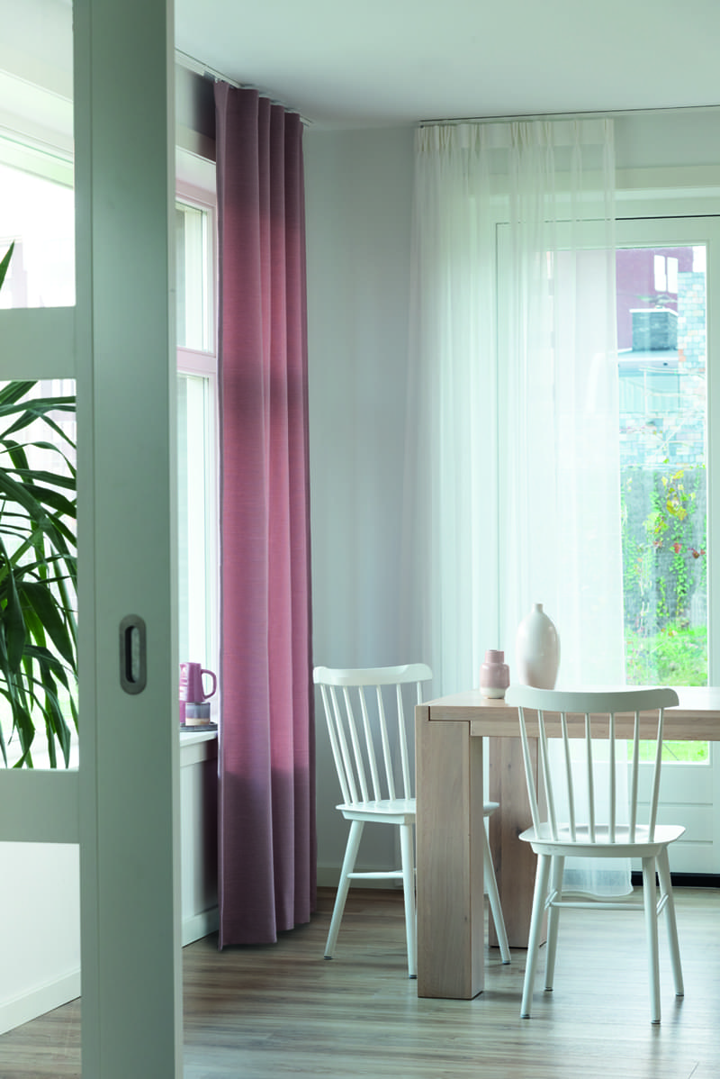 Twils is een tijdloze semi-transparante stof met een prachtige linnen optiek. De stof is echter geweven met een 100% polyester FR garen. Hierdoor heeft de stof een prachtige natuurlijke uitstraling maar met de goede eigenschappen van polyester zoals nauwelijks krimp, goede wasbaarheid en een hoge lichtechtheid van maar liefst 6! Twils wordt gebracht in 12 kleuren en bevat de veel gebruikte RAL kleuren 9010, 9016 (de witten) en 7037 (koud grijs) en 7005 (warm grijs) aangevuld met trendkleuren zoals mint groen, zacht roze en blauw. Twils is uitermate geschikt voor de projectenmarkt o.a. dankzij de hoogte van 320 cm. Twils is vouwgordijngeschikt en ook mooi op Wave te confectioneren.