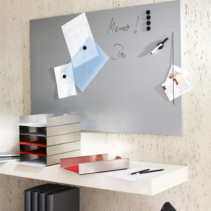 Het memobord MURO biedt plaats aan alle notities, losse briefjes, uitnodigingen, kaartjes en foto's. Afhankelijk van de beschikbare ruimte kan men kiezen in diverse maatvoeringen. Van 30 x 40 tot zelfs een formaat van 75 x 115. Blomus levert bijpassende magneetjes in kleur, roestvrijstaal of in de vorm van vrolijke handjes.