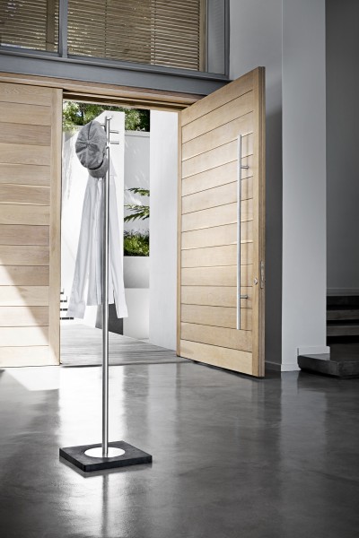 MENOTO belichaamt de karaktertrekken van een gentleman. Deze stabiele, slanke kapstok biedt plaats aan vele jassen. Dankzij de stevige standaard van roestvrijstaal en polystone kan MENOTO zwaar worden beladen zonder zijn evenwicht te verliezen. De draaibare haken zorgen voor meer ruimte en ophang gemak.