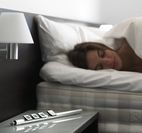 De BeoTime bevat ook een ingebouwde sleep timer die alle apparatuur van Bang & Olufsen in de kamer op stand-by kan zetten na een gekozen tijdsinterval van maximaal 120 minuten – een handige functie als u nog tot laat televisie wilt kijken of in slaap wilt vallen met het geluid van uw favoriete cd zonder dat u zich zorgen hoeft te maken over het uitzetten van de muziek. Naast de alarm- en sleeptimer-functies kunt u de BeoTime gebruiken voor de basisbediening van de televisie in de slaapkamer, de luidspreker of verlichting.