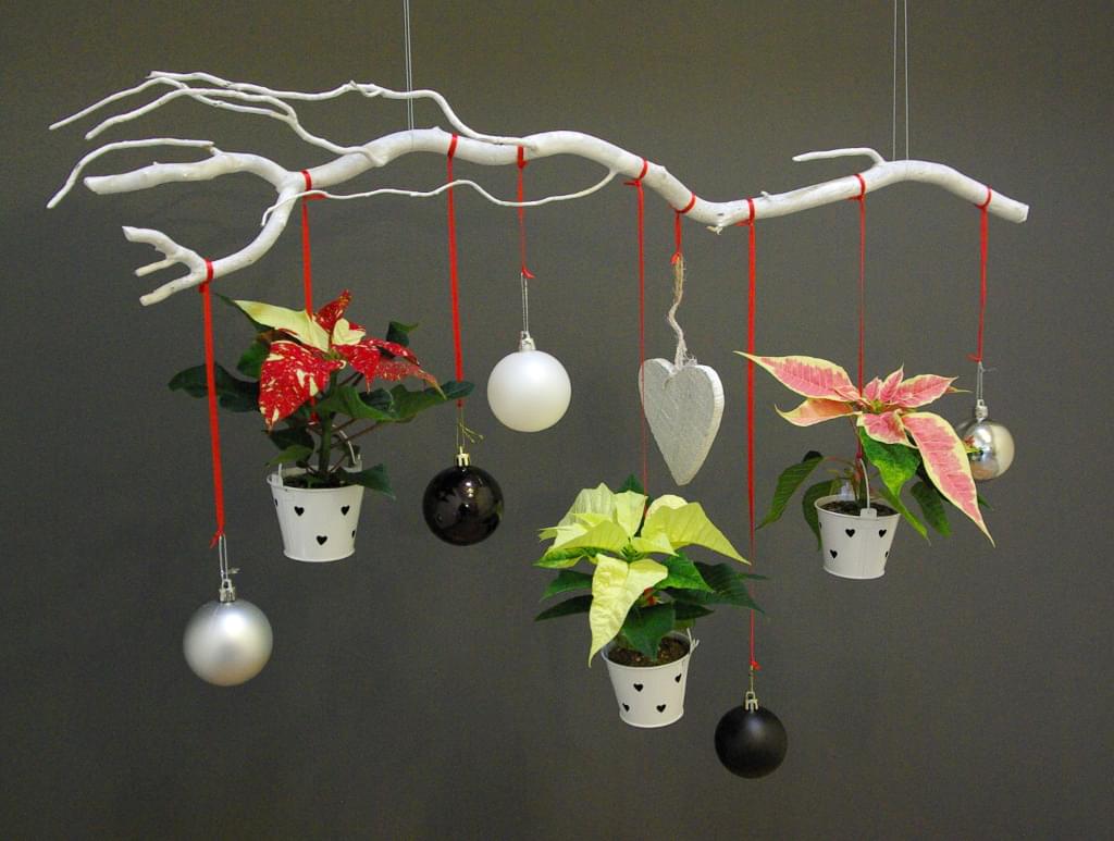 Voor de mensen die meer van rustige decoraties houden, bieden verschillende tinten roze uitkomst. De combinatie van zalmroze, felroze en zelfs abrikooskleurige Kerststerren zorgt voor een kalme en warme uitstraling. Plaats de verschillende tinten Kerststerren als snijbloemen samen met dunne witte decoratietakken in kleine, witte vazen. De witte kleuren zorgen voor een winters gevoel, terwijl de grote gekleurde bladeren van de Kerststerren de show stelen! Op de eettafel, de salontafel en in de vensterbank, dit sprookjesbos past overal in huis. Voor een speels en zacht effect, kunnen gele Kerststerren perfect gecombineerd worden met verschillende tinten roze. Zet Kerststerren in hetzelfde formaat met voldoende potgrond in een witte, gipsen schaal voor een natuurlijke look of schilder de schaal zelf in een kleur die bij de Kerststerren past. Om het huis extra mooi te maken, kunnen ook verschillende schalen naast elkaar geplaatst worden: een grote schaal met grote Kerststerren en een kleine schaal met mini’s. Extra decoraties als matte Kerstballen op stevig ijzerdraad en prikkandelaars metelegante, witte kaarsen, toveren dit plantenstuk om tot een waar pronkstuk.
