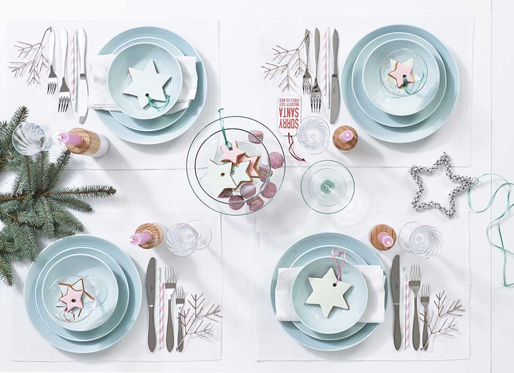 Pastels zijn helemaal van nu en passen eigenlijk in elk interieur. Voor een romantisch gedekte tafel met een knipoog naar Scandinavie, kies je voor een tafel die is gedekt met accessoires in zachte kleuren, zoals blauw en roze. Maak het geheel af met een paar mooie (echte!) kersttakken, een fis wit tafelkleed, en jouw romantische avond kan beginnen.