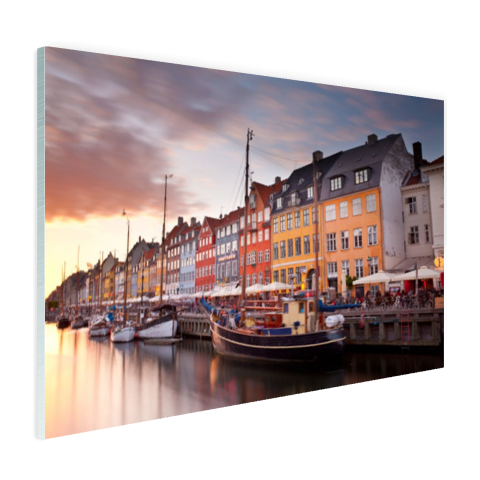 Hieronder vind je een voorbeeld van een wereldkaart op canvas en Kopenhagen op glas.