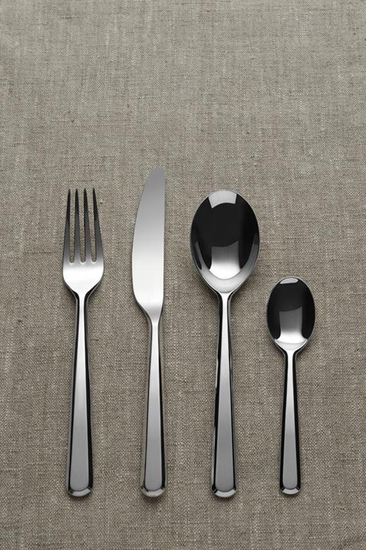 Het geometrisch uiterlijk en stalen lichaam laten het bestek spelen met licht waardoor een reflectieve glinstering ontstaat. Deze toegevoegde waarde is niet enkel knap maar brengt ook warmte aan tafel; ideaal om te genieten met vrienden en familie.