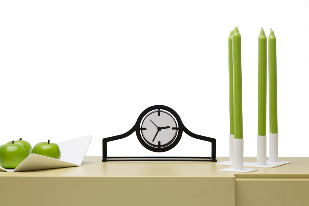 De mantelklok is een onderdeel van een serie. Outline tafellamp is ook onderdeel van deze serie.