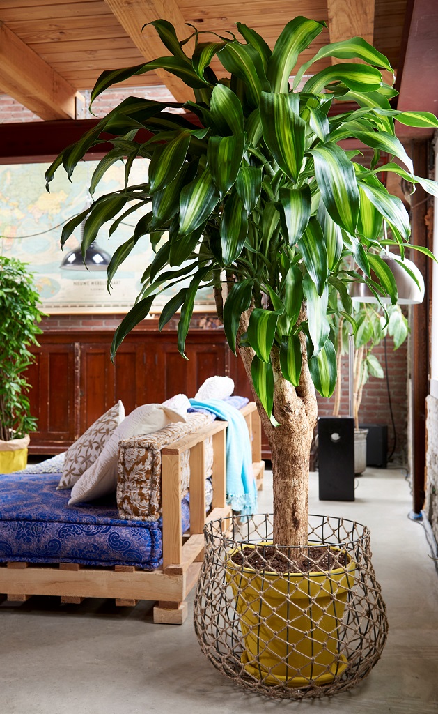 Deze stoere, exotische plant is verkrijgbaar van tafelmodel tot grote kamerboom en is een van de planten die de luchtkwaliteit in huis helpt te verbeteren. De Dracaena slaat vocht op in de stam, wat betekent dat je ‘m niet zo vaak water hoeft te geven. En zoals een tropische plant betaamt, vindt de Dracaena alles onder de 10°C te koud. Deze flamboyante kamerklassieker houdt de sfeer in huis mooi groen. Met desgewenst een vleugje geel, goud, roze of rood, want er is ruime keuze in verschillende opvallende bladtekeningen.