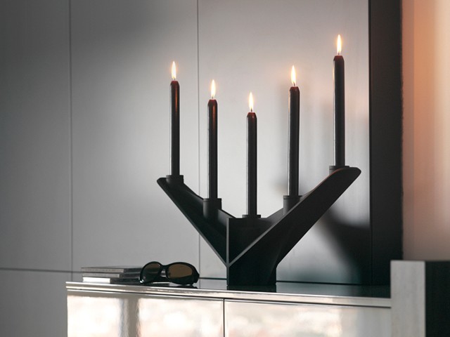 Paxton is de drager voor 5 kaarsen, maar zou wel 40 kilo kunnen torsen (maat: l 67 cm , W 11,6 cm , H 22,5 cm ). Prijs euro 159,00.