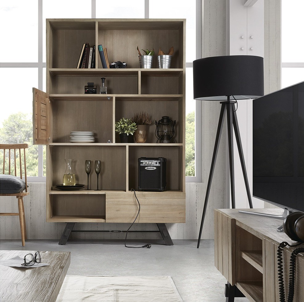 Net zoals met moderne technologieën gaat de industriële look nog tal van boeiende combinaties aan. Een tweede is die met landelijke, rustieke elementen zoals (gerecycled) hout of weelderige stoffen. Een houten tafel kan zo bekleed worden met harde materialen zoals staal of gietijzer. Een ijzeren frame kan afgewerkt worden met houten deuren. Een trendsetter is hier de Rockwell Collection. In Nederland kijk je naar makers zoals La Forma en Kare Design.