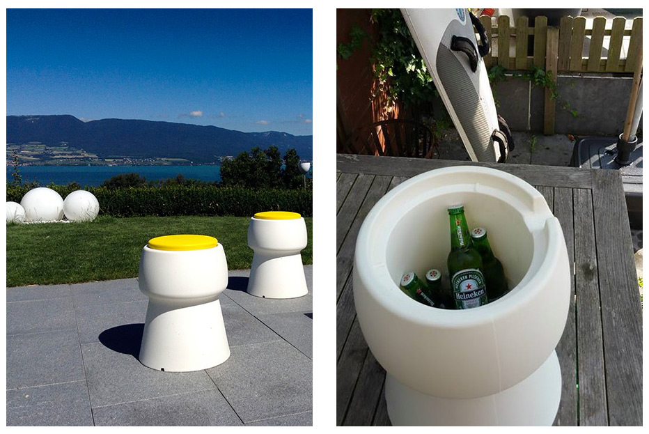 De Champ is niet alleen een krukje, bijzettafel of opberger maar ook een koeler. Lekker je fles wijn of biertjes koud zetten. Hoe handig is dat?