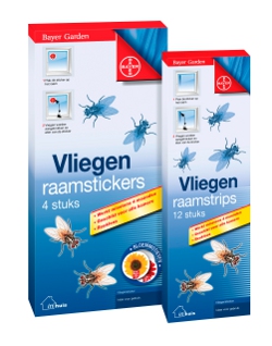 Bayer Garden heeft een nieuw product ontwikkeld dat geplaatst wordt waar de vlieg nagenoeg altijd te vinden is: (zoemend) op het raam. Deze Vliegensticker is de eenvoud zelve want hij wordt nagenoeg onzichtbaar op het raam vastgekleefd en is daar maar liefst vier maanden werkzaam. Na het seizoen is de vliegensticker eenvoudig zonder lijmresten te verwijderen. Er is ook een vrolijke variant in ronde vorm met een bloemmotief.