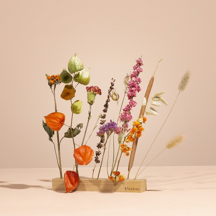 De Flowerstone is een van de nieuwste aanwinsten in het assortiment. Luxe droogbloemen, waaronder zwaardvaren en papaver, pronken op een voetstuk van keramiek met tien staanplaatsen. Het voetstuk is exclusief door bloomon ontworpen en handgemaakt door Royal Goedewaagen. De steen is met de hand geverfd in zachte beigetinten en elke steen is anders. Een ander geliefd droogbloemenontwerp is de Flowergram, verkrijgbaar in verschillende designs, waaronder een speciale najaarseditie: Fabulous Fall.