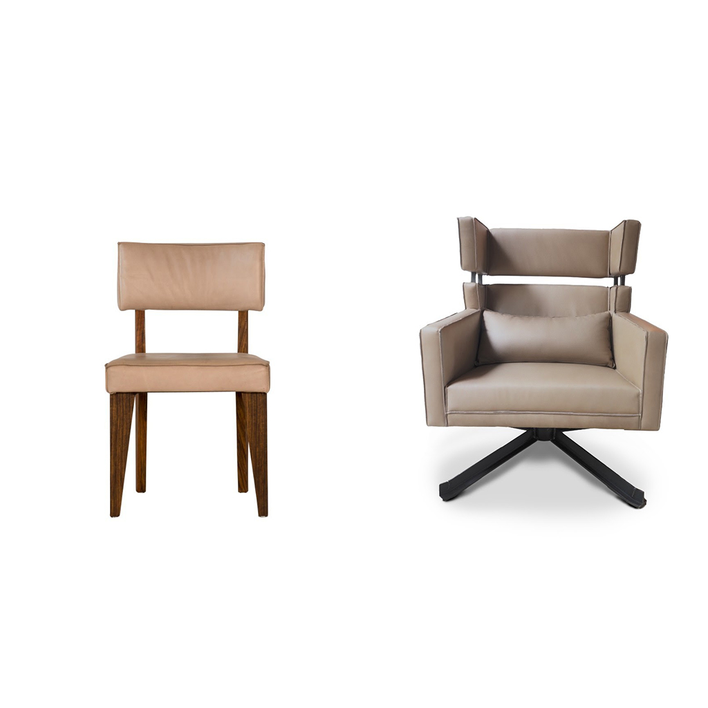 De luxe Executive Relax Chair en de Divine Dining Chair zijn twee key stukken uit de Private Indoor collectie van Piet Jan van den Kommer, die onderdeel zijn van het interieur in Villa Kranenbergh, een historisch boutique hotel gelegen in het kunstenaarsdorp Bergen dat compleet is gerenoveerd en ingericht door Piet-Jan van den Kommer.
