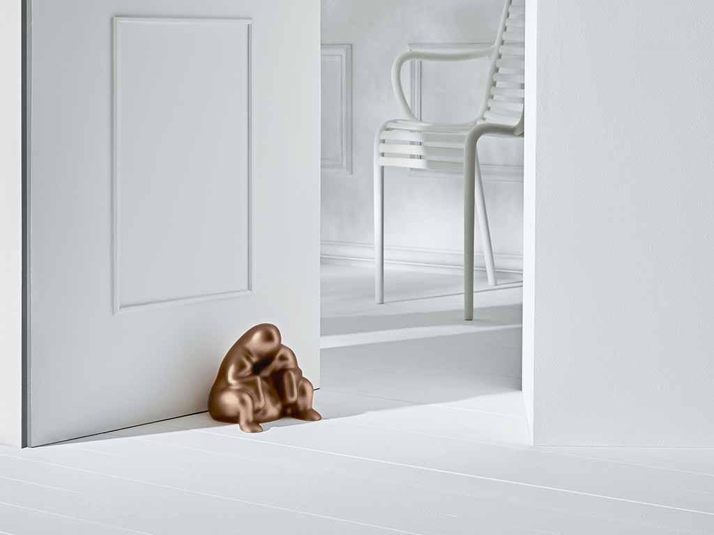 Daarnaast is het mannetje is ook een huisgenoot. Zijn lijfje is zacht en afgerond, waardoor hij sympathie opwekt en rust uitstraalt. Deze kleine maar dappere deurstop van Alessi is een onmiddellijke blikvanger in elk huishouden en maakt deel uit van het gezinsleven.