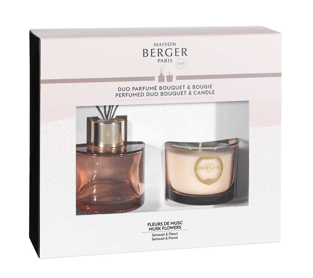 - Lampe Berger giftset met 250 ml huisparfum ‘Fleurs de Musc’ € 45,-