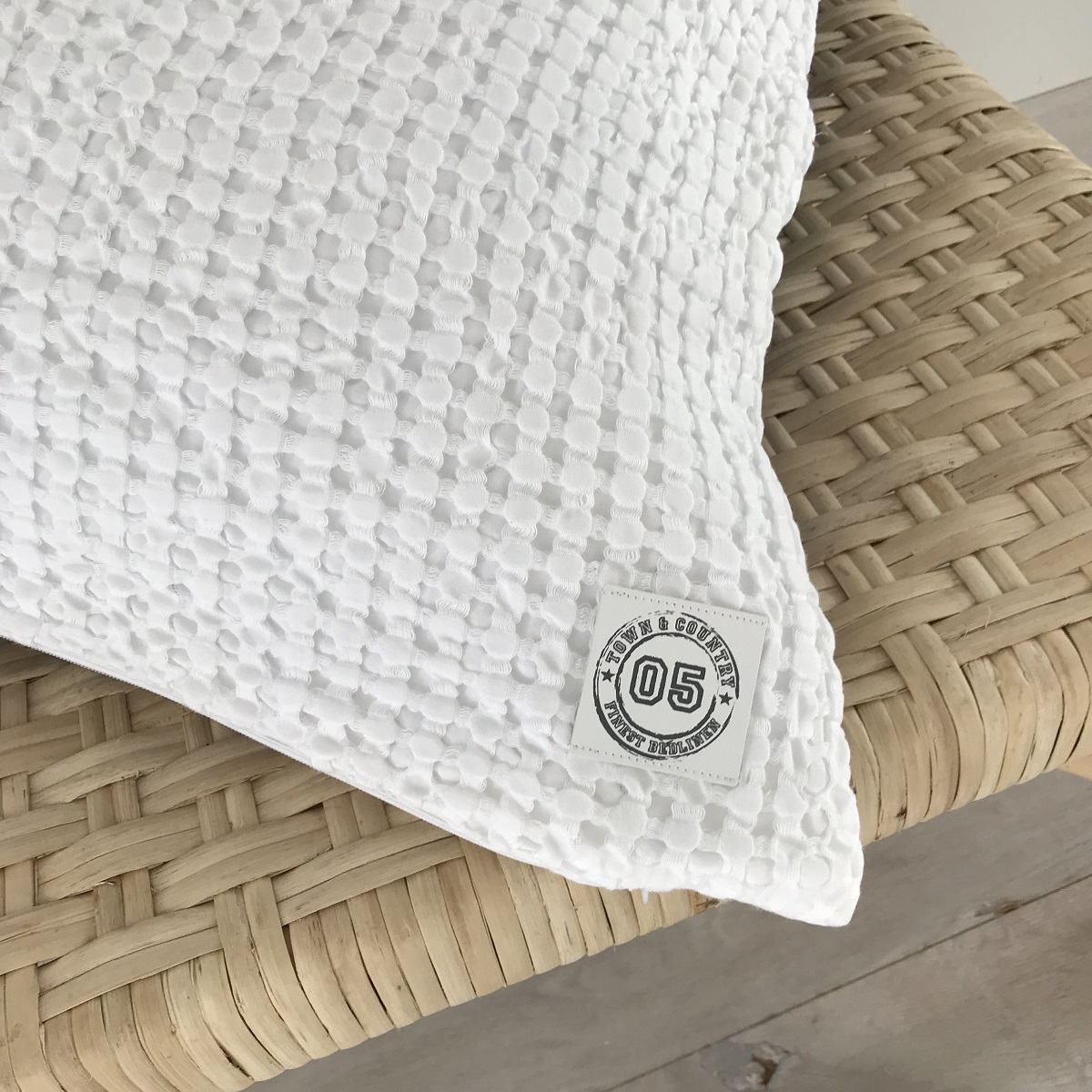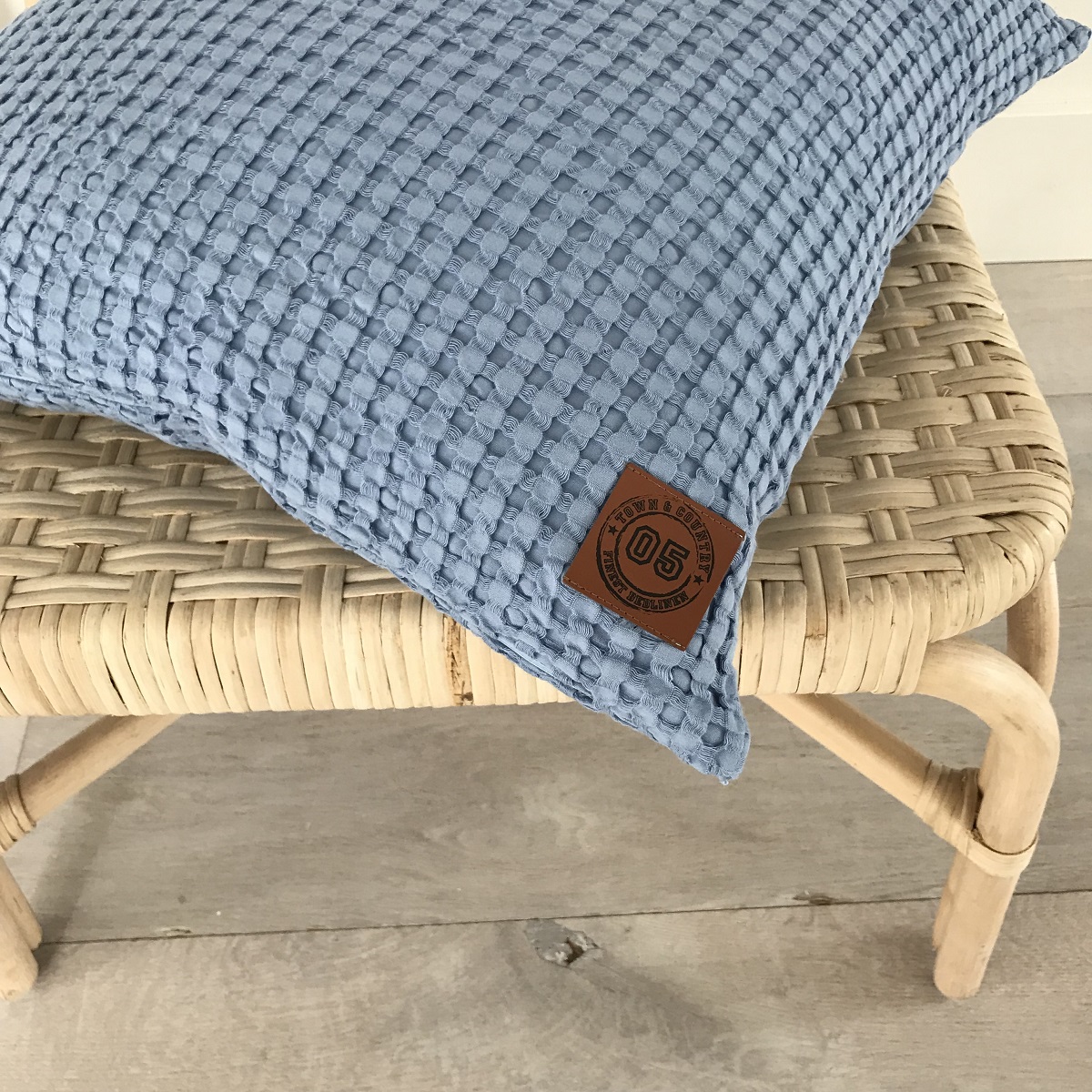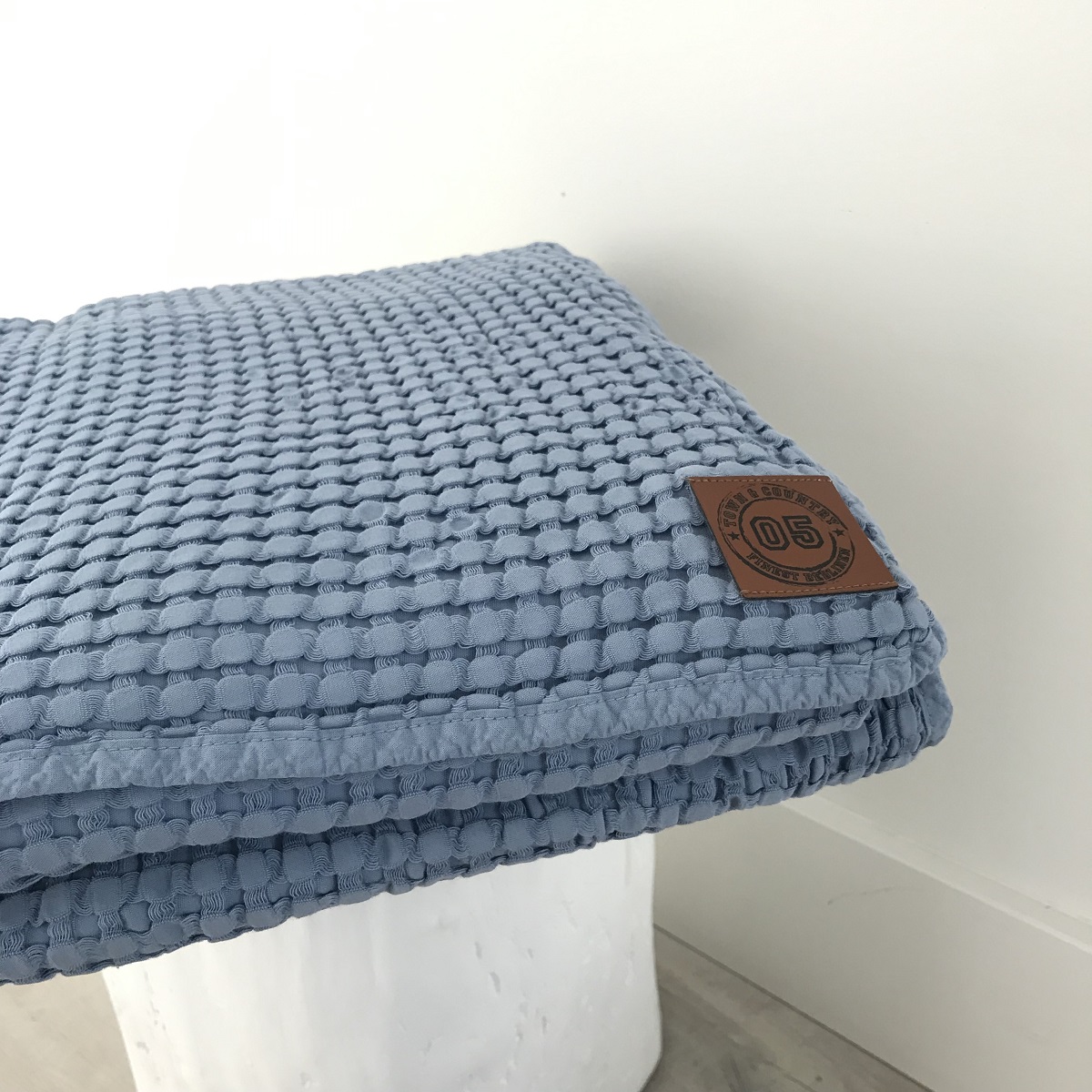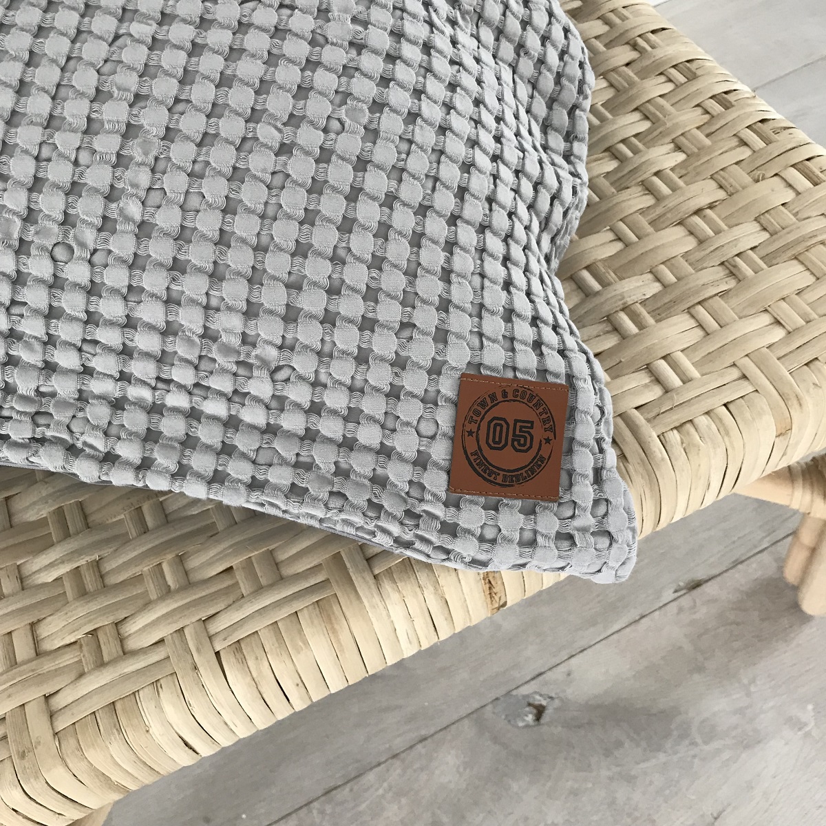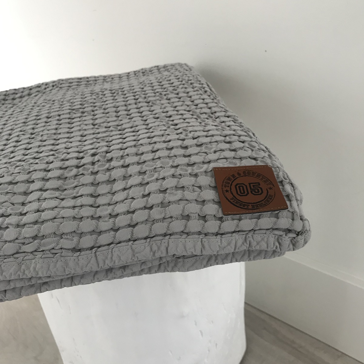 NIEUW in de collectie. Een lekkere zachte plaid gemaakt van 100 % katoen in de maat 150x200 cm. In de kleuren wit, oudblauw en leemgrijs.